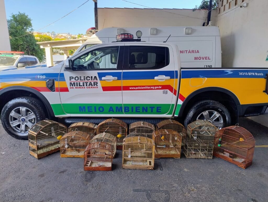 Na tarde deste sábado 27, militares dos Grupamentos de Meio Ambiente de Campo Belo e Lavras, apreenderam 23 pássaros silvestres