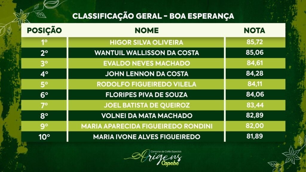 Ela não apenas conquistou o primeiro lugar da cidade, como também o primeiro lugar geral entre todos os cafés avaliados no Concurso Origens Capebe.