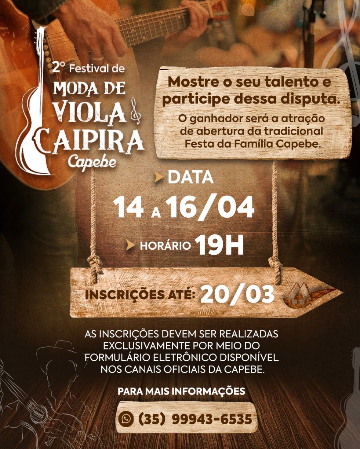 Se você carrega no peito o amor pela moda de viola, essa é a oportunidade de subir ao palco e mostrar seu talento em um festival que promete reunir grandes vozes e apaixonados pela música raiz.