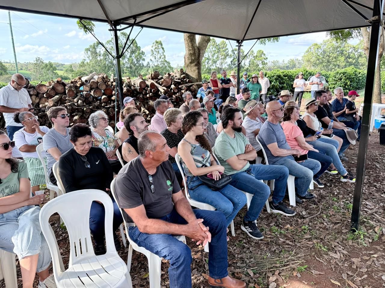 A programação foi estruturada em estações demonstrativas, permitindo que os participantes tivessem contato direto com soluções aplicadas no campo. Entre os temas abordados estiveram a cafeicultura regenerativa na prática, a fertilidade natural do solo com Bokashi, o crédito e o seguro rural como ferramentas de proteção da produção, além do mapeamento da qualidade do café, do talhão à xícara. O evento também contou com visita técnica à área experimental, apresentação institucional dos parceiros e sorteio de brindes.